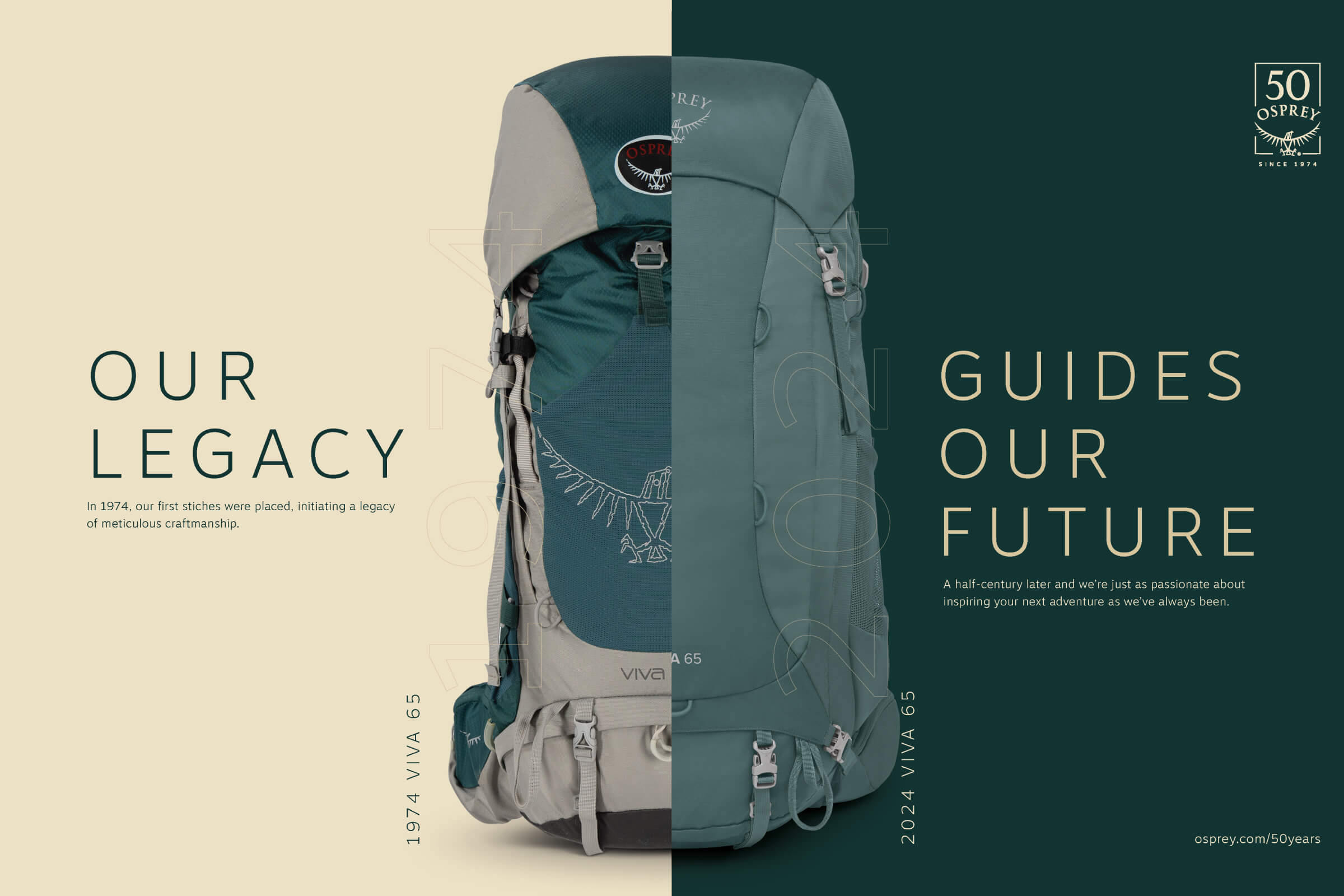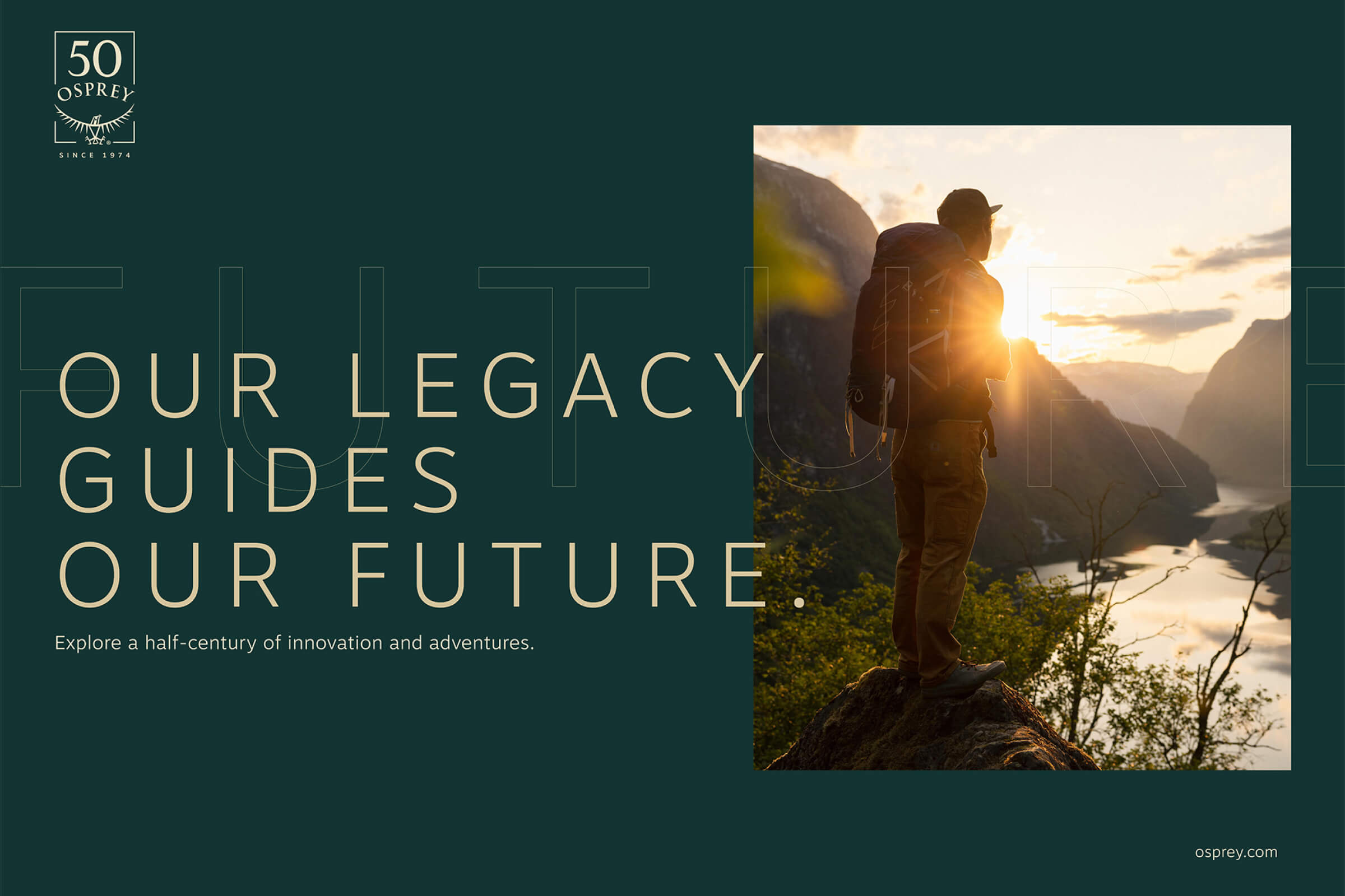 Celebrating Osprey’s 50-year heritage of innovation, community, and adventure, while looking toward the future of the brand.